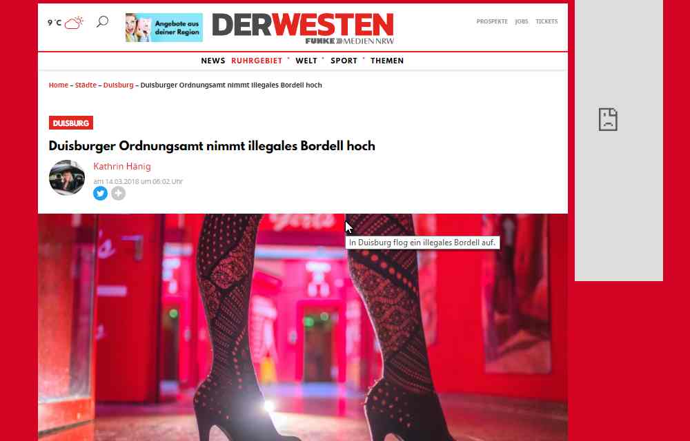 Veröffentlicht 16. März 2018 um 1000 × 640 in Prostitution 2018 – Überraschung? – Stadt Duisburg schließt illegalen Bordellbetrieb! duisburg2