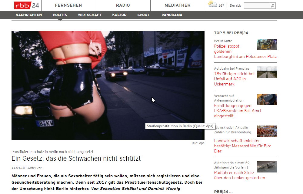 Veröffentlicht 12. April 2018 um 1000 × 640 in Aktuelle Meldung – RBB – Umsetzung Prostituiertenschutzgesetz in Berlin Ohne Titel Weiter →
