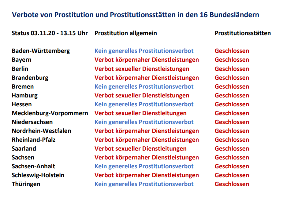 Prostitution 2020 – Lockdown – 16 Verordnungen, Rechtsfragen, Ethisches