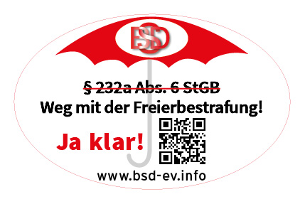 Wir unterstützen die Kampagne des BSD e.V., mit der eine Verfassungsbeschwerde gegen § 232a Abs. 6 Satz 2 StGB beim Bundesverfassungsgericht eingereicht wurde. Unter https://www.bringt-das-in-ordnung.de gibt es die Möglichkeit eine Petition zu unterstützen. Zudem gibt es dort weitere Informationen zum Thema.