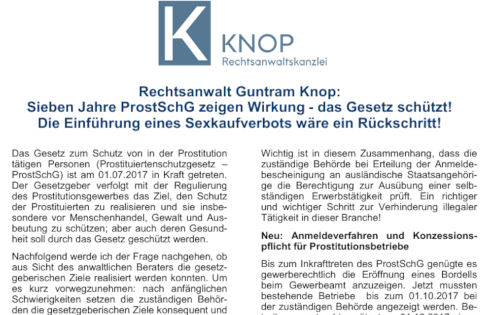 Rechtsanwalt Guntram Knops Betrachtung zu 7 Jahren ProstSchG