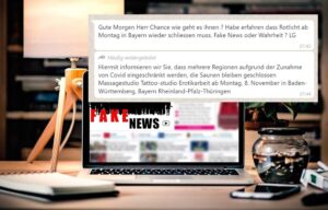 Achtung Fake-News: Schließungsankündigung Bordelle wegen Corona! Angeblich wollen mehrere Landesregierungen Bordellbetriebe wieder schließen. Unsinn und bewusste Verunsicherung der Branche!...